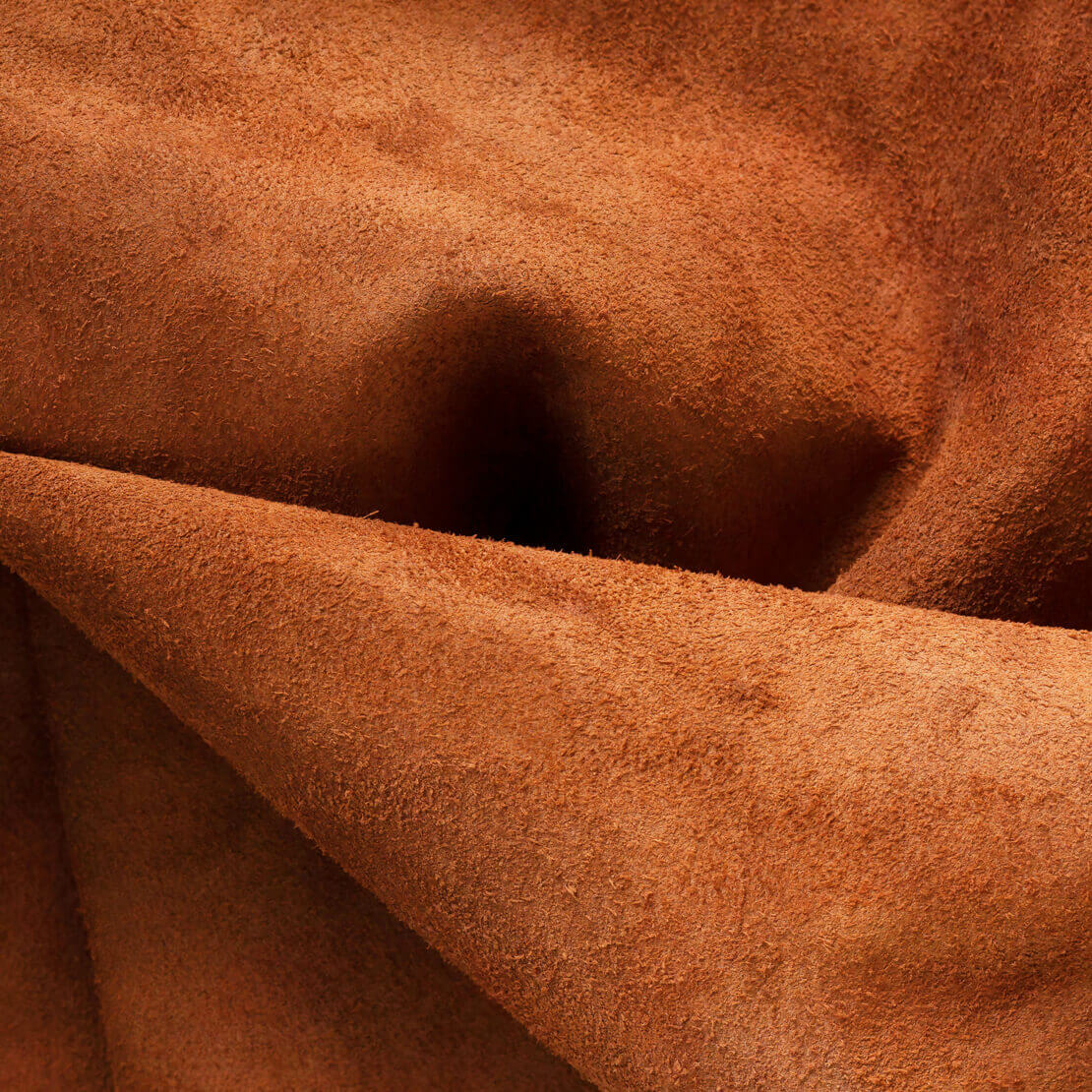 Issus d’un léger ponçage de la fleur (nubuck) ou de la croûte (daim), ces cuirs se distinguent par leur toucher velouté et leur rendu mat.