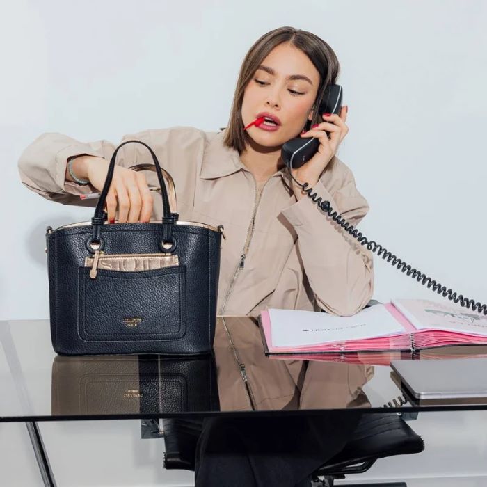 Pour un style plus audacieux, les reflets métallisés sont une alternative très en vogue. L’or clair, l’argenté ou encore le bronze doux donnent du relief à la tenue sans la surcharger. Le Sac Shopping M Riada, disponible sur La Boutique Maroquinerie, illustre parfaitement cette tendance : sa finition dorée capte la lumière avec élégance, sans excès. Le Sac Shopping M Roselyne, quant à lui, séduit par son ton champagne légèrement irisé, idéal pour les cérémonies d’été et les looks raffinés.