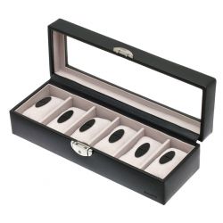6 montres peuvent prendre place dans ce coffret sur des coussins rembourrés de coton.