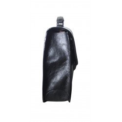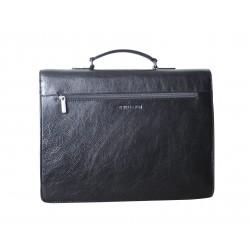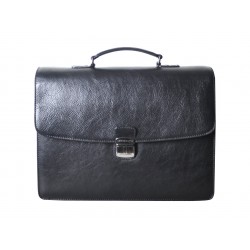 Serviette 1 soufflet en cuir vachette, munie d'une poignée rigide. Rabat à fermoir tuck, un compartiment, poche plate et emplacements stylos. Poche zippée au dos. Housse de rangement livrée.