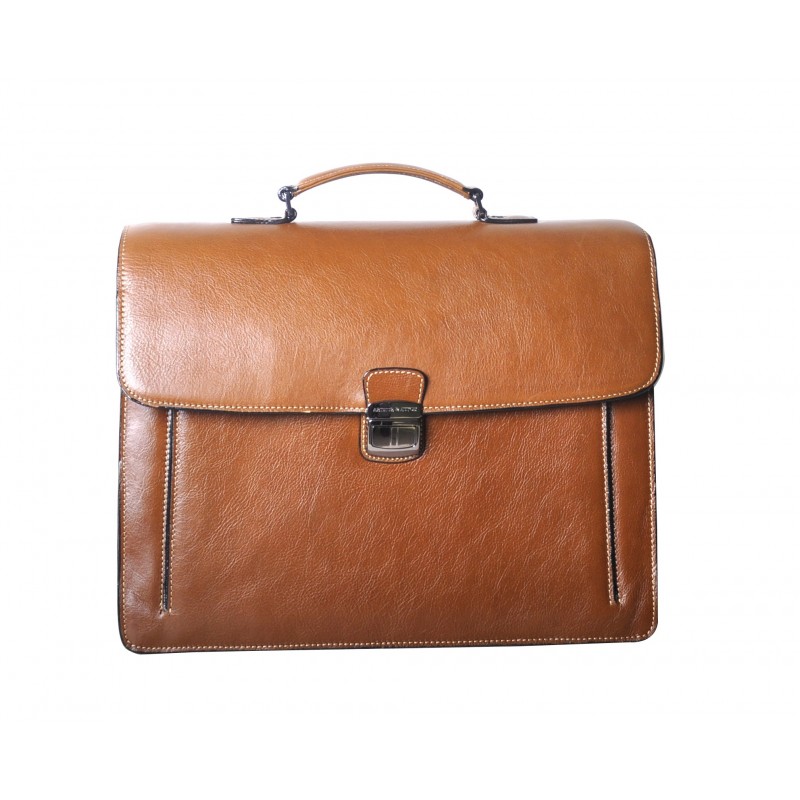 Serviette 3 soufflets en cuir vachette, avec poignée rigide, rabat à fermoir tuck, 3 grands compartiments, avec une séparation zippée. Poche plate et emplacement stylos, et poche devant et au dos à zip. Housse de rangement livrée.
