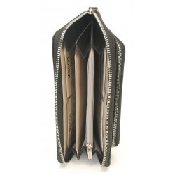 L'aménagement intérieur comprend douze encoches cartes, trois compartiments pour vos papiers et une poche pour y ranger vos billets sans les froisser. Un joli modèle, intemporel et bien pensé, facile à marier aux sacs de la même ligne.