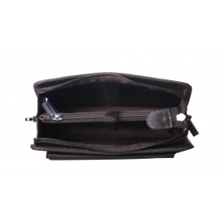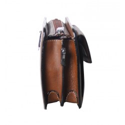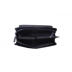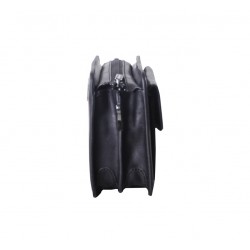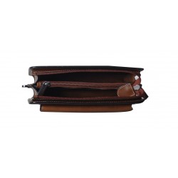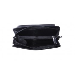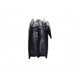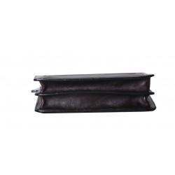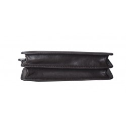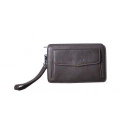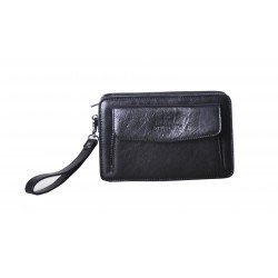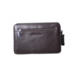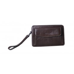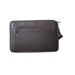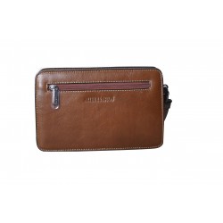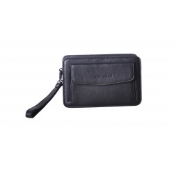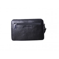 Pochette homme en cuir de vachette, avec lanière sur le côté. Poche sur le devant aimanté et poche au dos à glissière, ouverture zippée sur le dessus, 3 compartiments intérieurs dont un zipé. Le logo est gauffré devant et derrière le produit. Housse de rangement livrée.