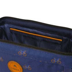 Cette trousse de toilette en toile offre un compartiment spacieux entièrement doublé.